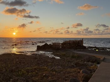 夕日が沈む頃に合わせて、入りました。