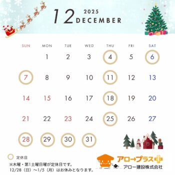「12月定休日」のお知らせです。