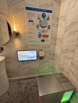 AIが健康チェック&アドバイスをしてくれるという「未来のトイレ」。デザインも興味深い。