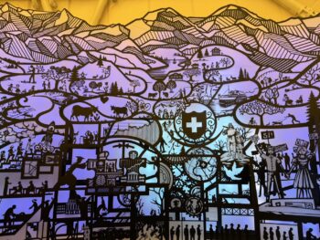 「スイス館」 ・・・切り絵が可愛い♪ハイジが隠れています。