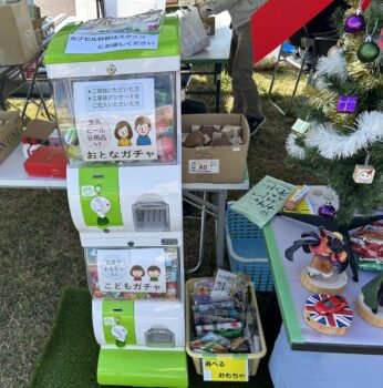 おとなガチャは、日用品や食品など。こどもガチャは、おもちゃなどが当たります。