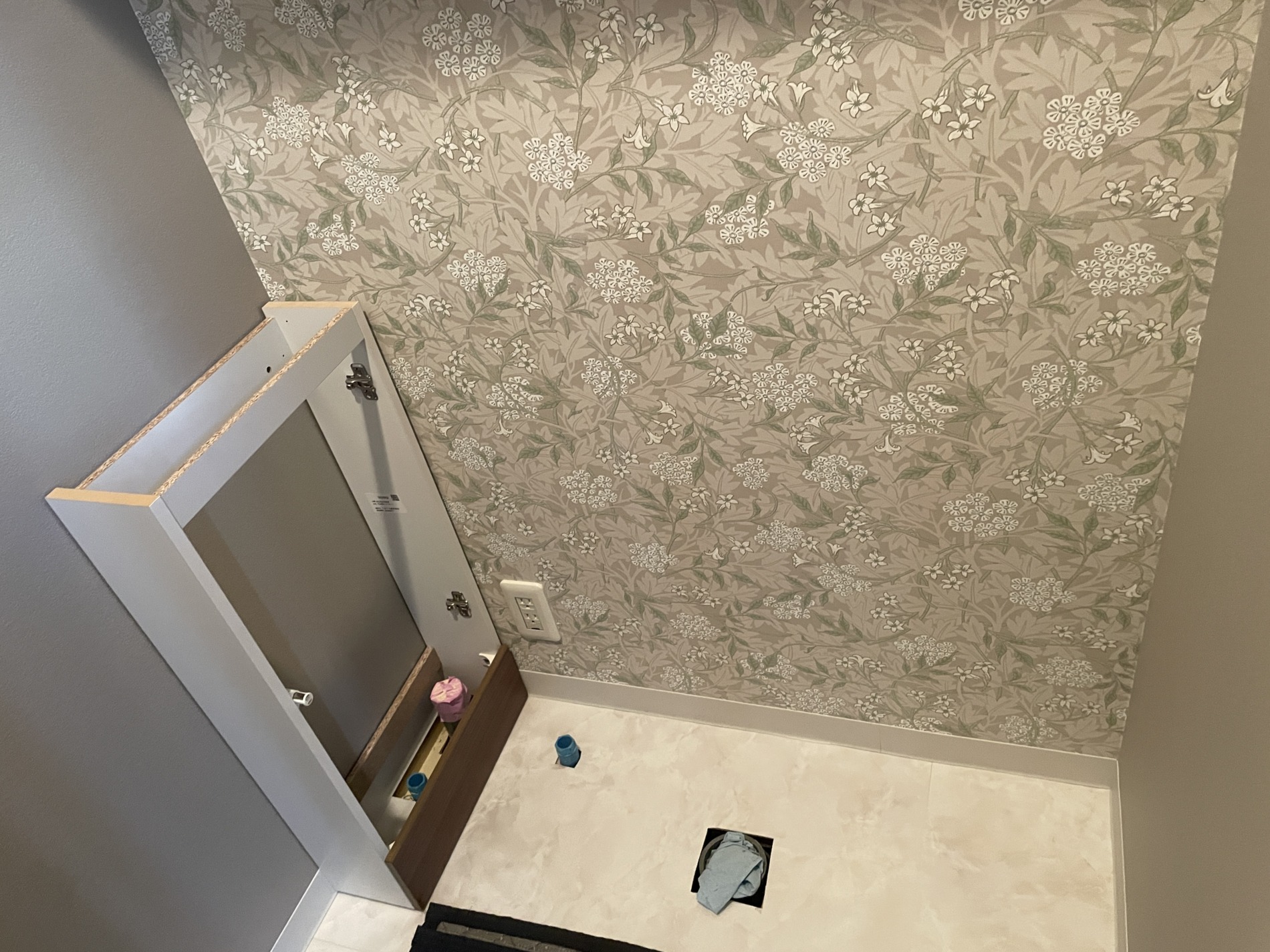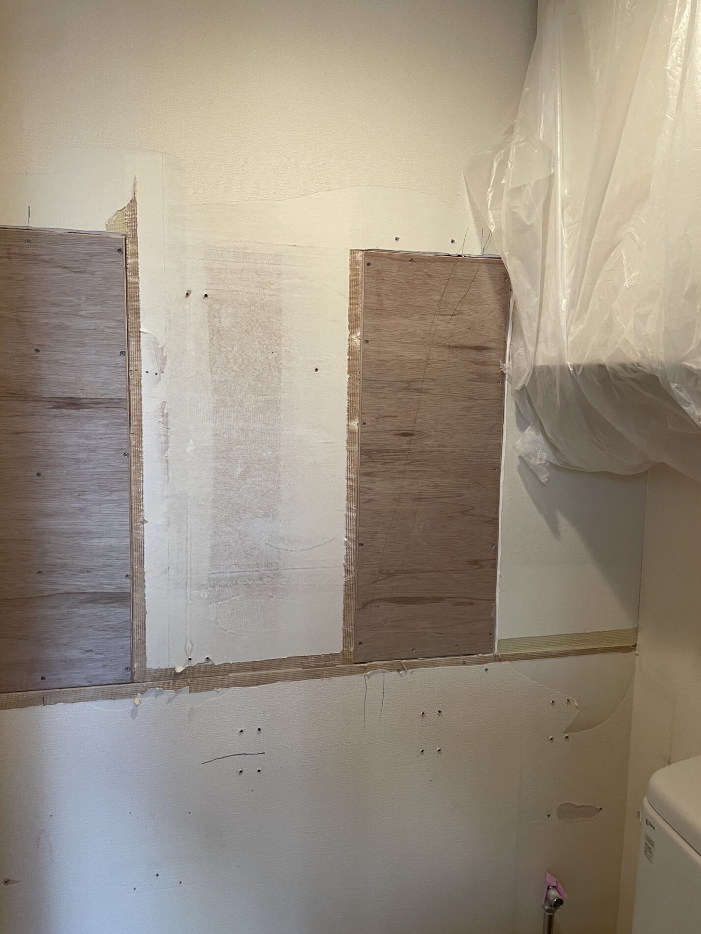 | 施工内容 | トイレ工事 ・既存撤去、処分、取付など ・フロアタイル施工 ・既存手洗器撤去、取付、排水仕込み ・手すり ・キャビネット取付 ・天井、クロス、床、貼替など |