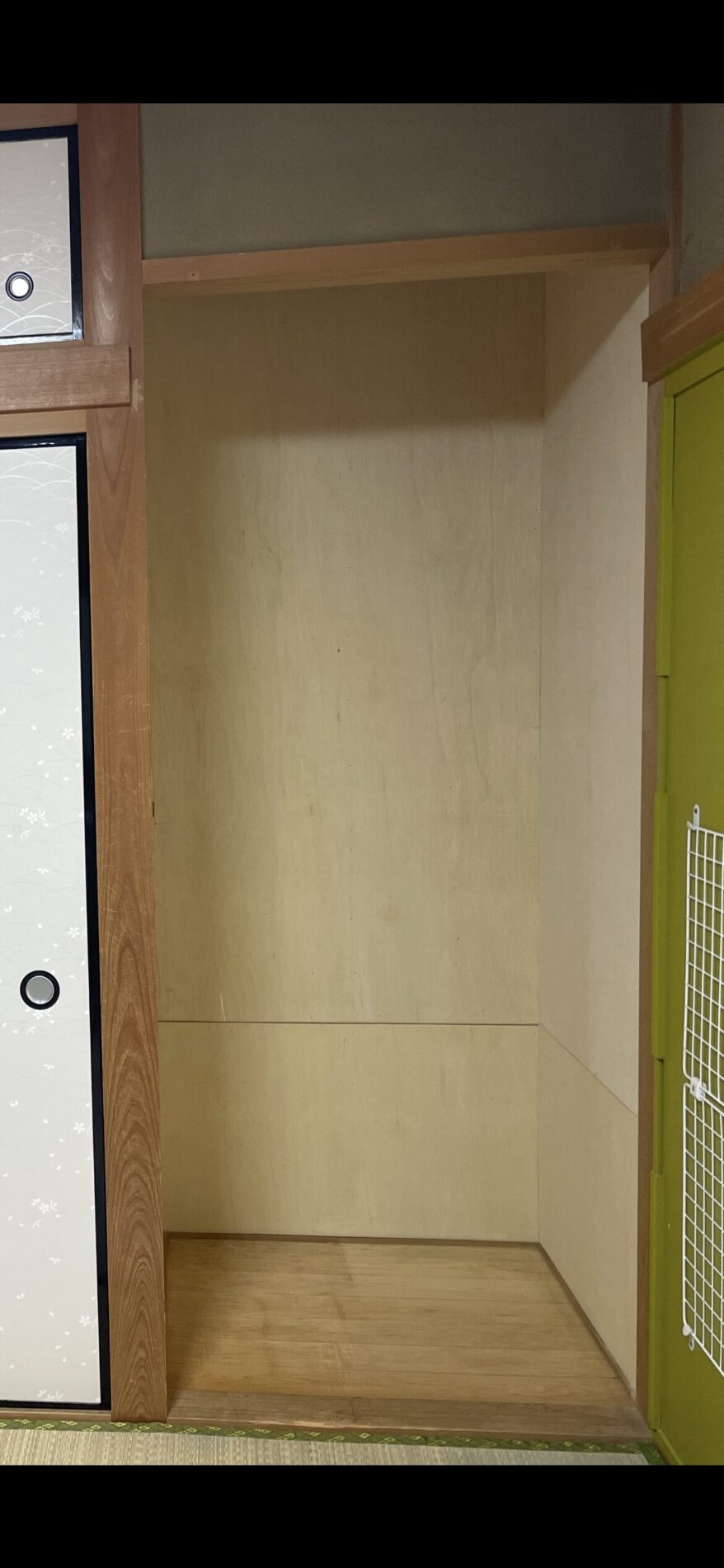 | 施工内容 | ・押入れ中段撤去 ・床、壁べニア板施工費 ・襖貼替(押入用サイズ大2枚、天袋サイズ2枚)など。 (産廃など含む) |